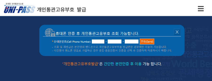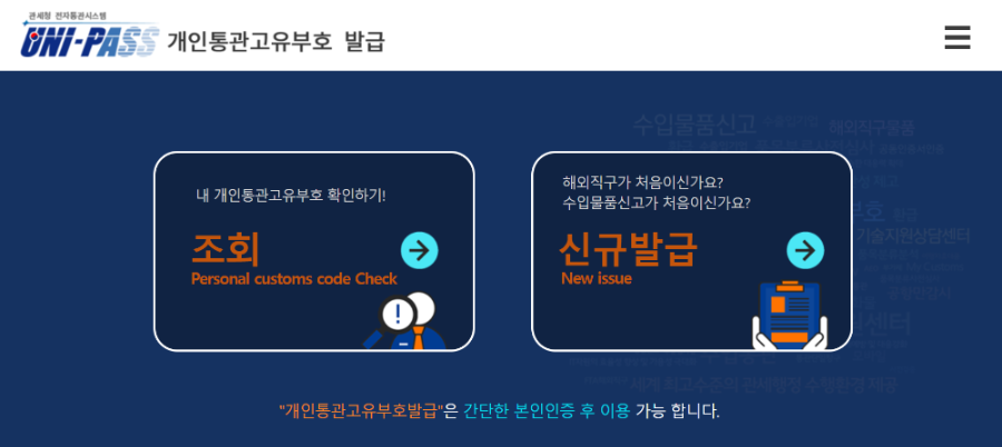 "개인통관고유부호발급"은 간단한 본인인증 후 이용 가능 합니다.