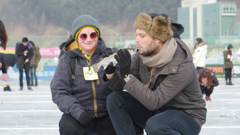 ✅ 얼음낚시의 대표격인 산천어 낚시 체험.