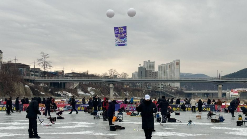 ✅ 홍천강 위에서 열리는 얼음송어 낚시 체험.