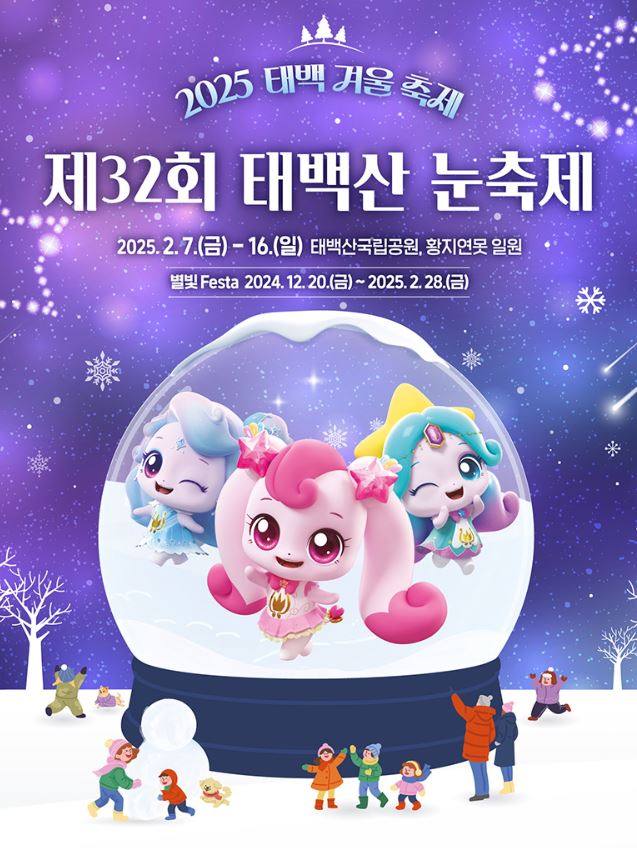 ✅ 태백산 국립공원의 웅장한 설경을 배경으로 눈 조각 전시.