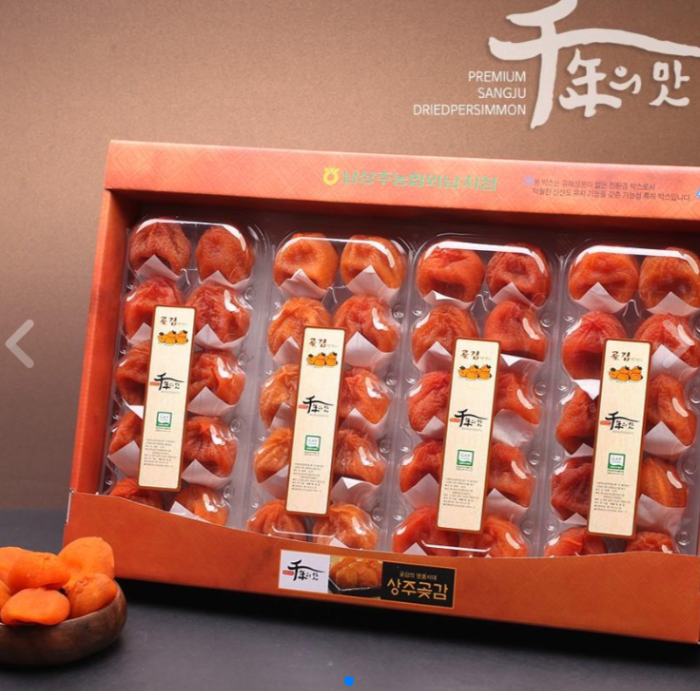 상주의 곶감은 천연 당도가 풍부하고 쫄깃한 식감이 살아 있어 간식용이나 차례 음식으로도 훌륭합니다.