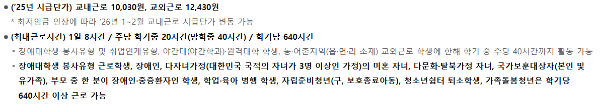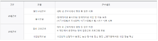 - 근로 시간: 학기 중 주당 최대 20시간 (방학 중 최대 40시간)