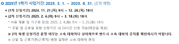 ✅ 1학기 2차 신청: 2025년 2월 4일(화) ~ 3월 18일(화) 18시까지