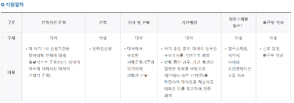 단순히 금전적인 지원을 받는 것이 아니라, 학교나 공공기관, 기업에서 근로 활동을 하면서 실무 경험을 쌓을 수 있다는 점에서 장점이 많습니다.