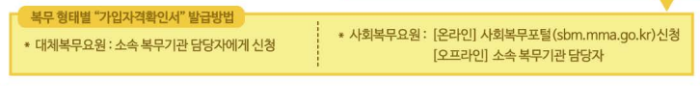 ✅ 사회복무요원: 사회복무포털 또는 복무기관