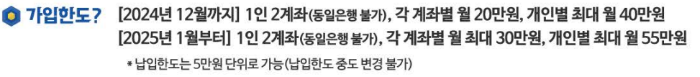 ✅ 2024년 12월까지 1인 2계좌, 계좌당 월 20만원, 최대 월 40만원까지 납입 가능