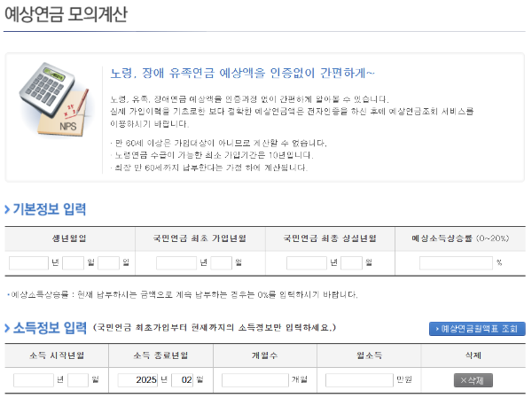 연금 예상 수령액은 국민연금공단 홈페이지에서 모의 계산을 통해 확인할 수 있습니다.