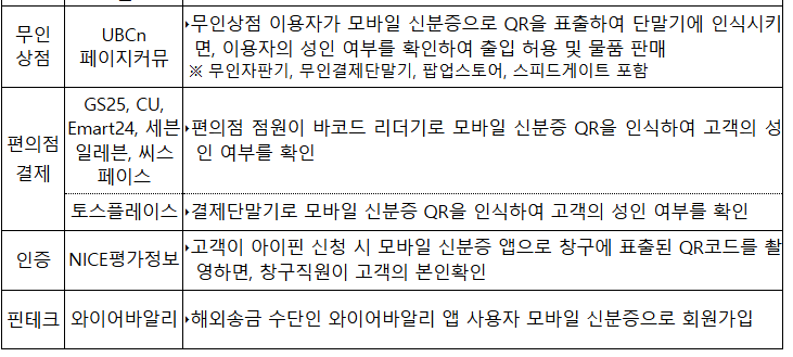 ✅ 편의점 및 대형 마트: 성인 인증(주류 및 담배 구매 시 활용)