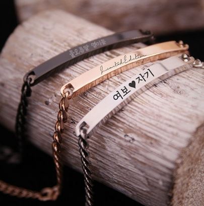 마지막 발렌타인데이 추천 선물은 커플팔찌입니다. 커플팔찌답게 각인을 한 제품이 많이 보였는데요. 이번 발렌타인데이에는 서로의 이름 혹은 애칭을 각인해서 끼고다닐 수 있는 커플팔찌는 어떠세요?