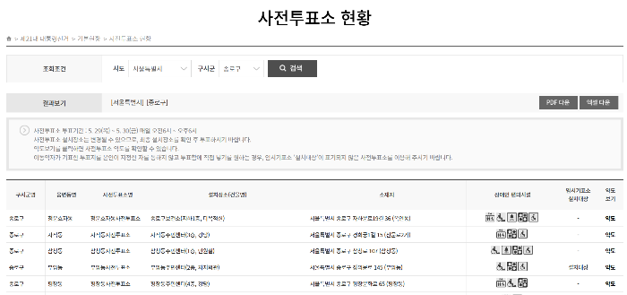 사전투표소는 읍·면·동 주민센터, 공공시설, 학교 등에 설치되며, 장애인 편의시설이 마련된 곳도 확인 가능합니다.