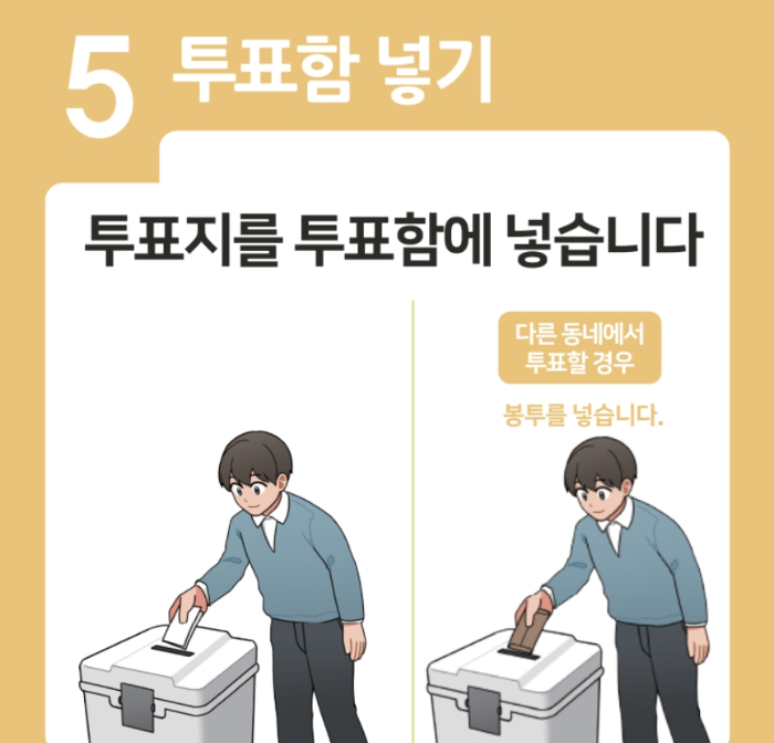 ✅ 관내 유권자: 거주지와 같은 지역에서 투표하는 경우 → 바로 투표함에 투입