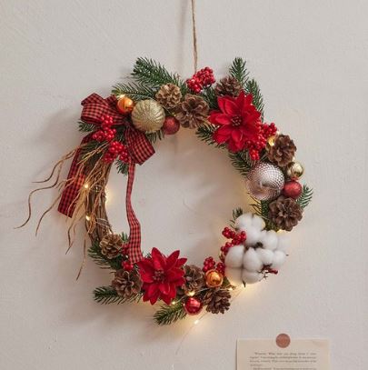 하지만 꽃이나 과일로 장식하지 않아도 크리스마스 리스를 건 문을 사용하는 모든 사람들의 행운을 비는 마음은 동일하게 작용하겠죠! 이번 크리스마스 홈파티에서는 크기가 작아서 부담스럽지 않으면서도 크리스마스 분위기를 한껏 낼 수 있는 크리스마스 리스를 사용해보시는 건 어떨까요?