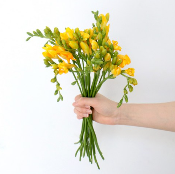 ✅ 프리지아 꽃다발: 봄의 따뜻한 분위기를 담은 화사한 꽃다발.