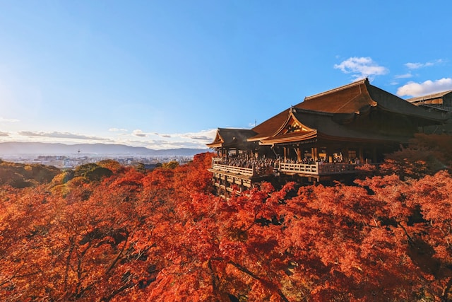 기요미즈데라, 은각사: 교토의 수많은 사찰들은 저마다의 아름다움으로 가을을 수놓습니다. 미리 동선을 계획하여 여러 사찰을 둘러보며 일본의 가을을 만끽하세요.