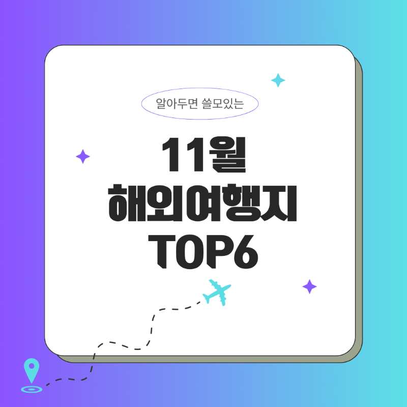 11월 해외여행, 어디로 떠나야 할지 고민하고 계신가요? 고민하고 계시는 분들을 위해 11월에 떠나기 좋은 해외여행지 TOP6를 소개합니다.