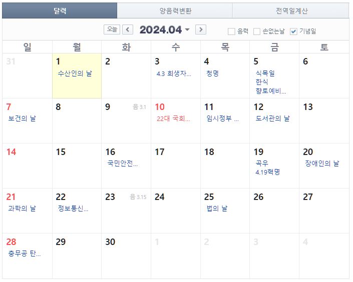 원래 4월은 토요일과 일요일 외에 공휴일이 없지만