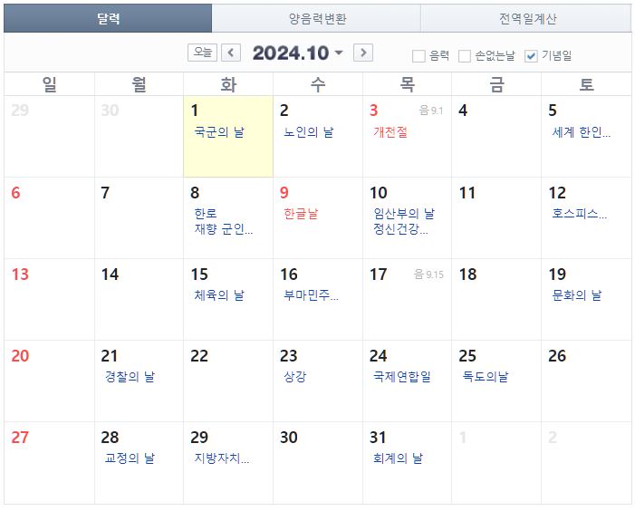 2024년 공휴일 달력 / 2024년 대체 공휴일 총정리