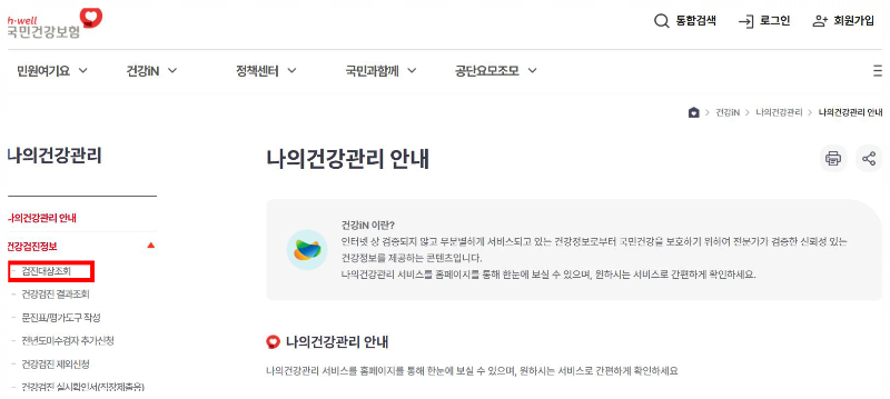 국민건강보험 홈페이지 로그인 > 건강iN > 나의 건강관리