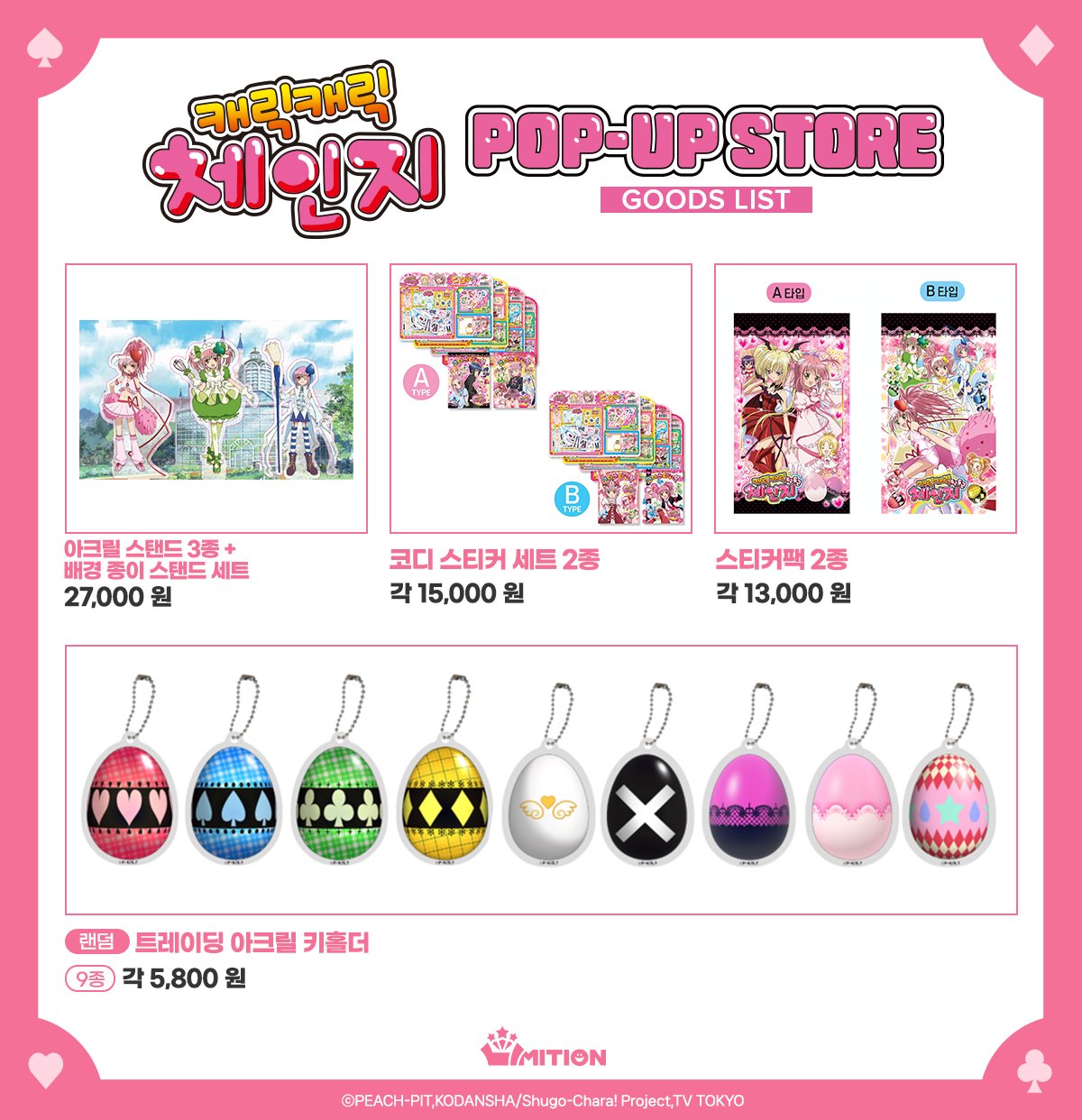 캐릭캐릭체인지 팝업에는 정말 다양한 굿즈가 준비되어 있는데요. 덕후들의 마음을 설레게할 배지, 키링, 스탠드 등 다양한 굿즈가 준비되어 있습니다.