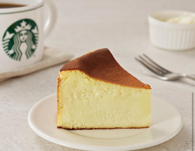 겉면의 스모키함과 내면의 크리미한 크림 치즈가 조화로운 스타벅스만의 바스크 치즈 케이크입니다.