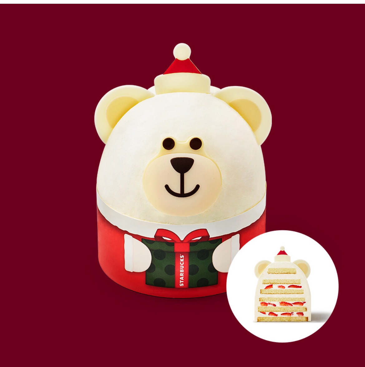 부드러운 마스카포네 생크림 안에 신선한 생딸기가 층층이 샌드되어 달콤한 맛과 귀여운 산타 베어리스타 모양이 매력인 케이크입니다.