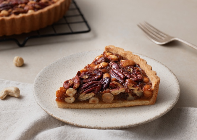 마카다미아, 피칸, 헤이즐넛, 캐슈넛을 함께 구워, 견과류의 고소함과 달콤한 풍미를 입안 가득 느낄 수 있는 클래식 넛츠 타르트입니다.