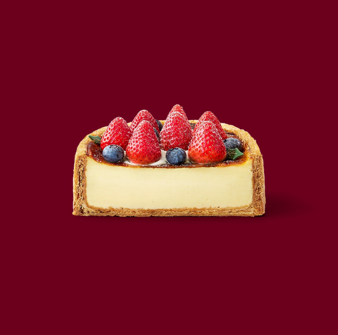 프랑스 최고의 디저트 플랑대회 우승자 '밀레앙 서용상 쉐프'의 레시피로 스타벅스와 함께 기획한 특별한 크리스마스 케이크입니다. 바닐라 풍미 가득한 부드러운 커스터드 크림을 가득 채운 플랑에 신선한 딸기, 블루베리, 쿠키 크럼블을 더한 스페셜 플랑입니다.