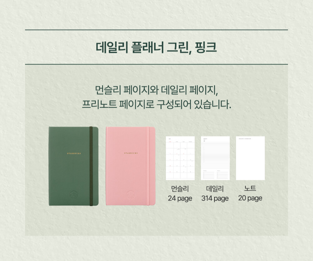 그린과 핑크는 데일리 플래너, 브라운은 언데이티드 플래너입니다.