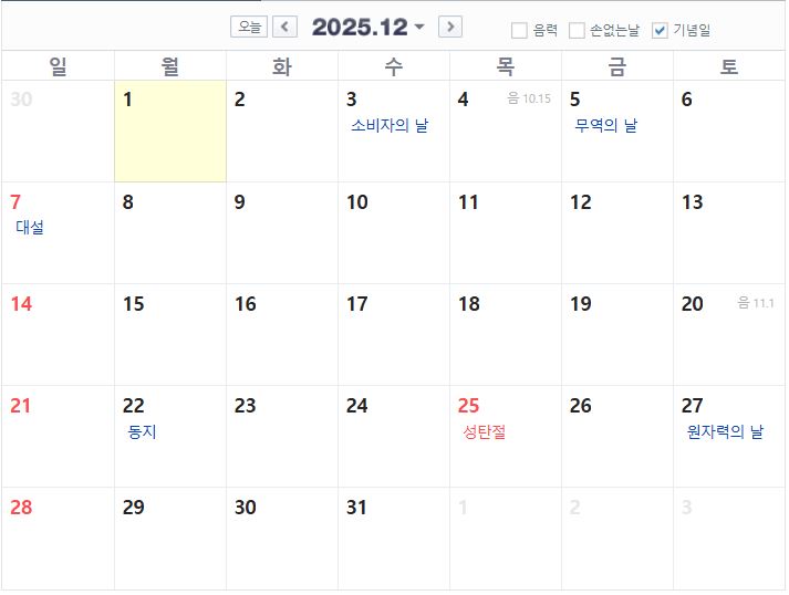 2025년 12월 공휴일
