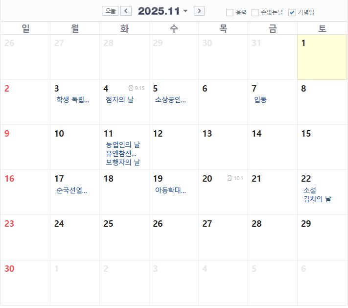 2025년 11월 공휴일