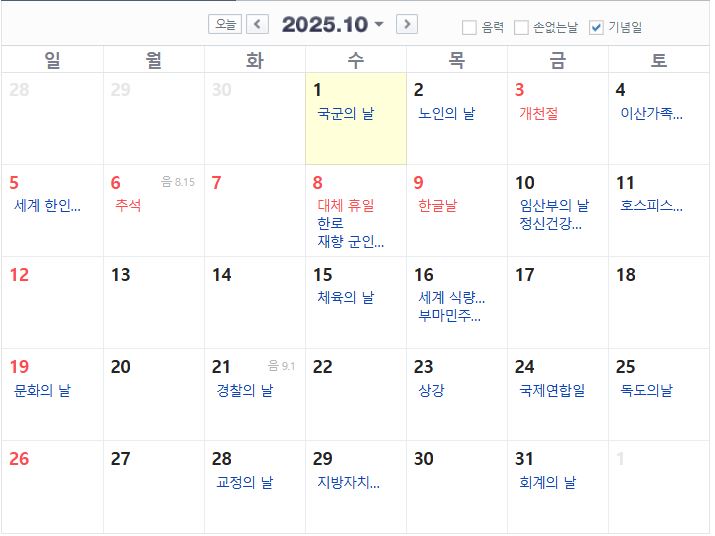 2025년 10월 공휴일 (대박)