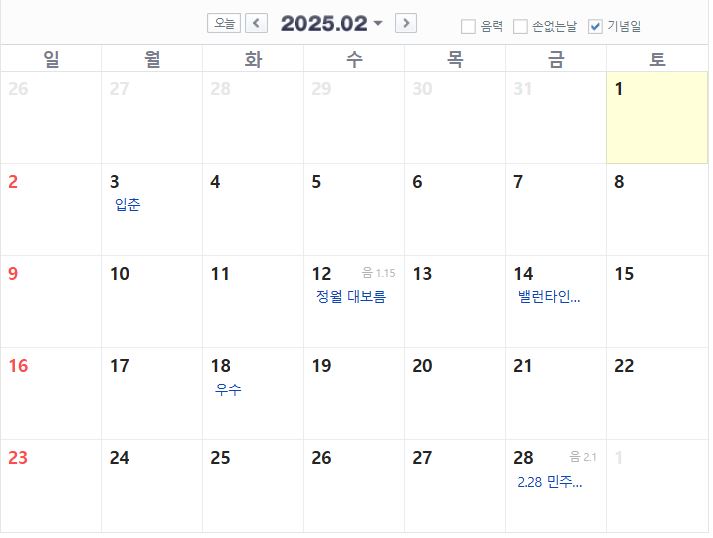 2025년 2월 공휴일