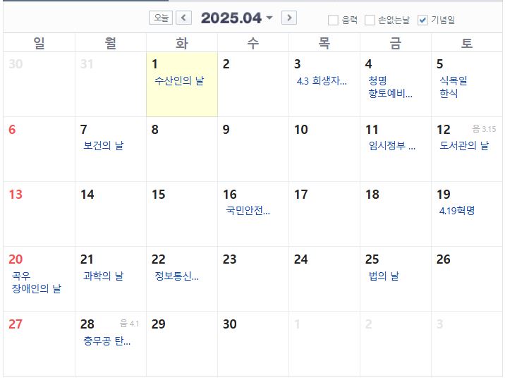 2025년 4월 공휴일