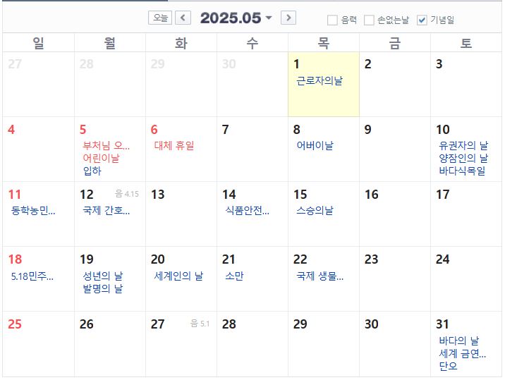 2025년 5월 공휴일