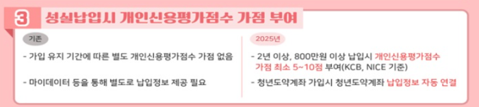 하지만 2025년부터는 성실납입을 하면 신용점수 가점을 받을 수 있습니다!