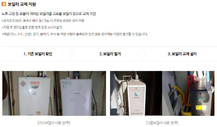 고효율 보일러 및 에어컨을 설치하면 에너지 절감 효과는 물론, 관리비 부담도 줄일 수 있습니다. 지원을 통해 난방과 냉방을 효율적으로 개선하여 보다 건강하고 쾌적한 환경을 만들어 보세요!