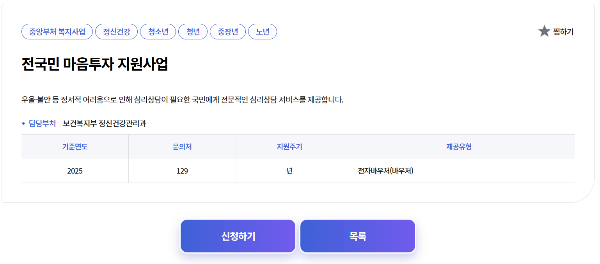 2025년 전국민 마음투자 지원사업 자격 지원내용 신청방법