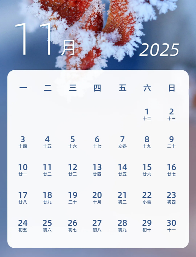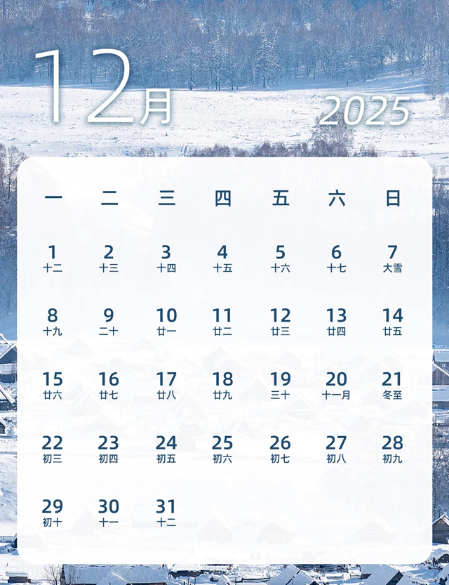 2025년 11월 12월 중국 달력