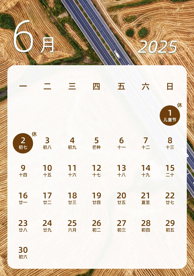 2025년 6월 중국 달력