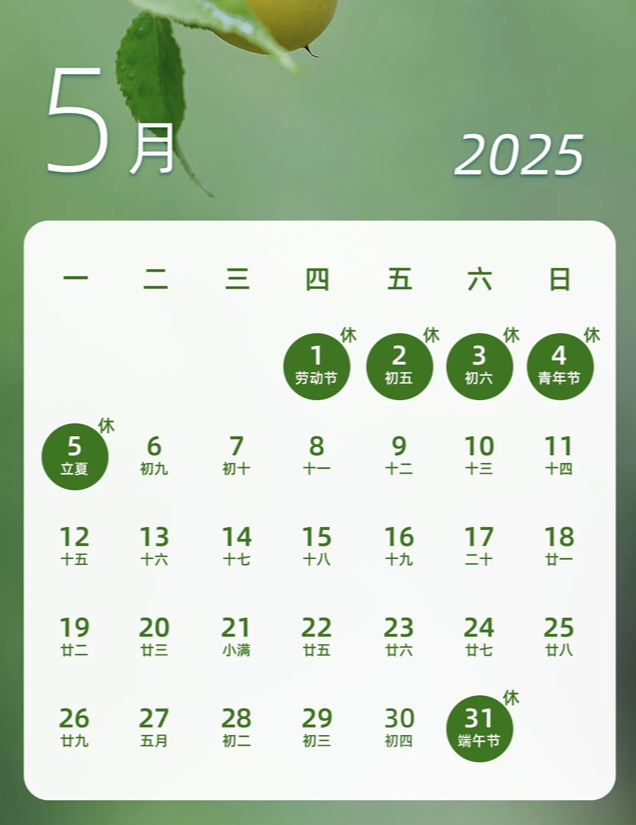 - 단오절: 2025년 5월 31일(토) - 6월 2일(월) / 3일 휴무