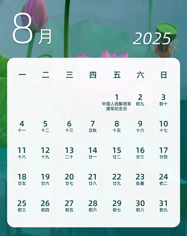 2025년 7월 8월 9월 중국달력