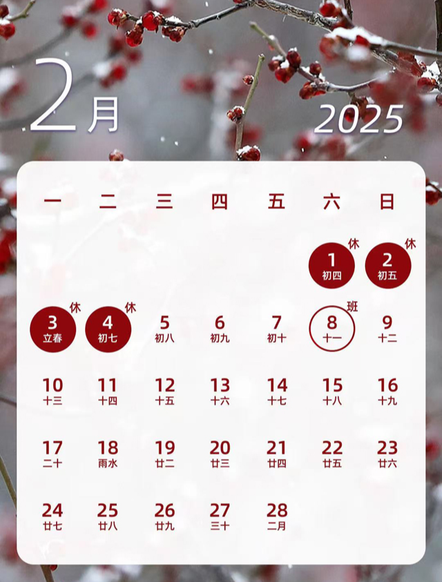 2025년 2월 중국 달력