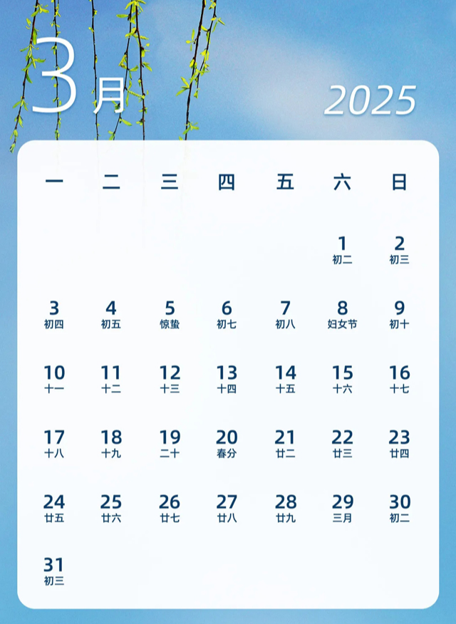2025년 3월 중국 달력