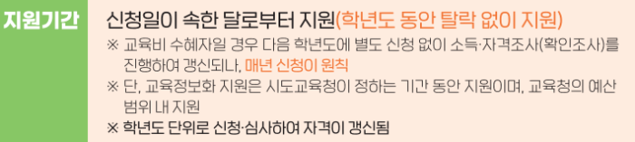 학기 초부터 혜택을 빠짐없이 받기 위해서는 3월 집중신청기간을 놓치지 말고 신청하시고, 자녀들의 안정적인 학습 환경을 만들어주시길 바랍니다.
