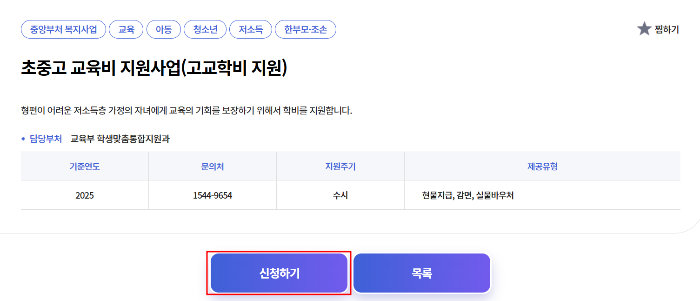✅ 교육급여와 중복 신청 : 교육비 지원과 교육급여는 동시에 신청이 가능합니다. 다만, 소득 기준이 다르므로 자격 여부를 개별 확인하셔야 합니다.