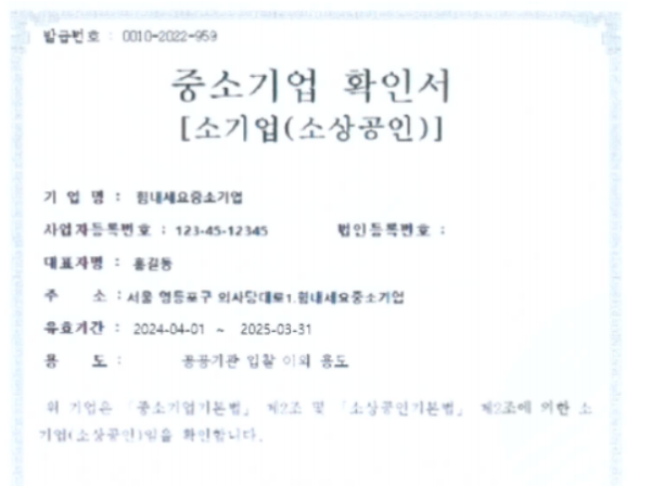 ✅ 사업자등록증 기준 소상공인 (중소벤처기업부 소상공인 기준 충족)