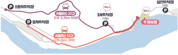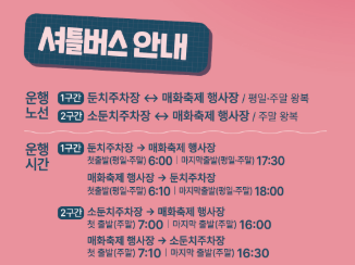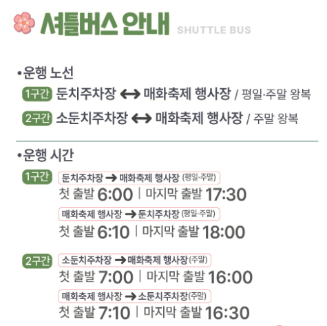 광양 매화축제는 무료 셔틀버스도 운행하고 있습니다. 셔틀버스에 대한 정보는 아래 사진을 참고해주세요