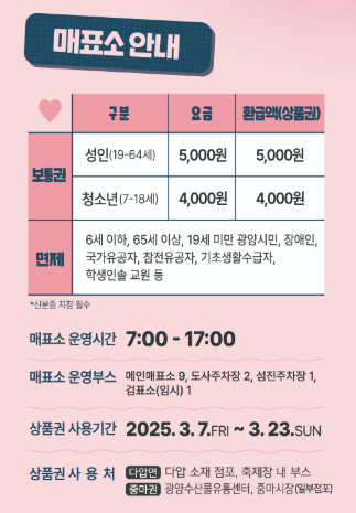 ✅ 면제 대상: 6세 이하, 65세 이상, 19세 미만 광양시민, 장애인, 국가유공자, 참전유공자, 기초생활수급자, 학생인솔 교원 등