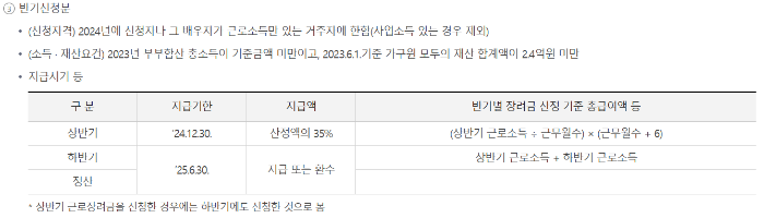 근로장려금 반기 신청 기간(2024년 하반기분)