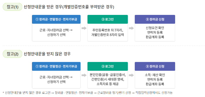 | 신청 대상 | 근로, 사업, 종교인 소득자 | 근로소득자 |